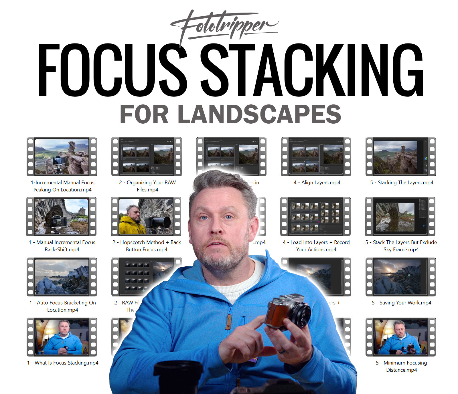 In this photography course I teach you the entire process of focus stacking your landscape photography images so that you can create hyper-real landscapes with amazing sharpness from the immediate foreground right into the far distance.